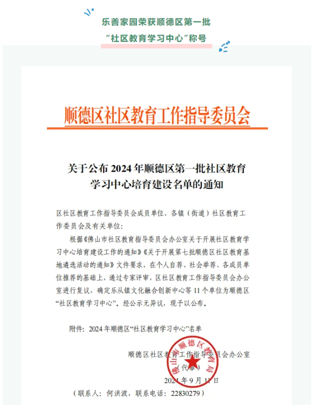会员动态丨乐善家园荣获顺德区第一批“社区教育学习中心”称号,开启社区教育新篇章!