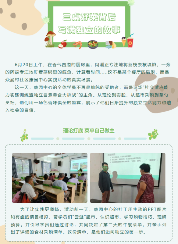 会员动态丨勒流众涌康园中心|超市货架到厨房灶台,康园学员掌勺亮厨艺,烹出“独立”好滋味