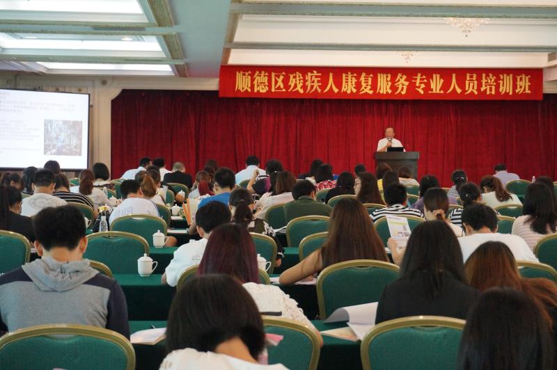 近年来,随着各级政府、社会对特殊儿童,特别是自闭症儿童的不断关注,我区在特殊儿童的康复、教育方面取得较大发展,越来越多的机构也在不断的开展特殊儿童的康复、教育。为了更好的服务顺德的特殊儿童及家庭,发挥顺德区特殊教育专业技术人员的积极作用,培训前,举办了顺德区残疾人康复协会特殊教育专业技术委员会成立仪式,并由顺德区残疾人康复协会心理学技术顾问何义炜博士代表致辞,最后由顺德区残疾人联合会欧阳理事长发表重要讲话,欧阳理事长指出希望通过加强我区特殊教育专业技术人员能力建设,促进专业人员相互支持和学习,更好地为顺德区特殊教育事业的发展提供专业服务。顺德区残疾人康复服务专业人员培训在上午9点30分开始,由台湾特殊教育专家程国选博士为主讲,何博士重点介绍了特殊教育理论模式,分享了台湾特殊教育发展经历的阶段和特殊教育课程的实作经验,并探讨了特殊教育课程设计等话题。第二天培训由台湾特殊教育专家蔡瑞美老师授课,蔡老师以生动形象的动画片开始,介绍了各类残障儿童的特点,加深了特殊教育专业工作者对残障儿童的认识。通过台湾的实际案例分析讲述了如何配置、建设资源教室以及资源教室的使用方法。