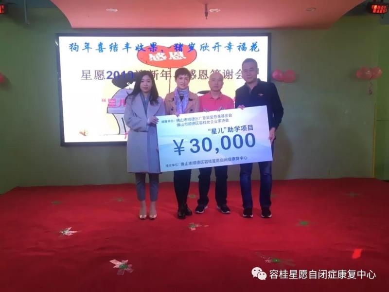 容桂女企业家协会、广意昊爱慈善基金会定向捐赠3万元“容桂星愿自闭症儿童助学专款”。