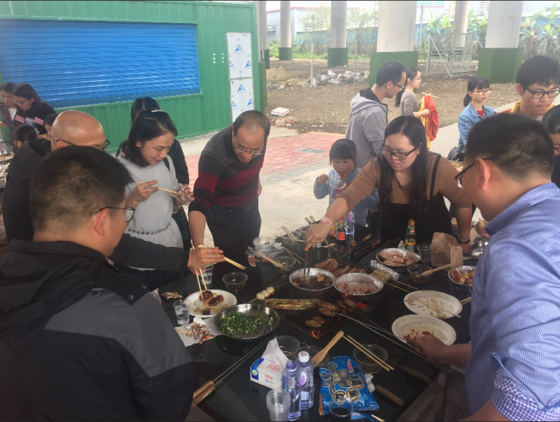 大家展示了不同的烧烤方法和技艺,欢声笑语随着缕缕炊烟萦绕在空中,大家吃着自己亲手烤出的各种食品,聊着自己在工作和生活中遇到的各种趣事,其乐融融。