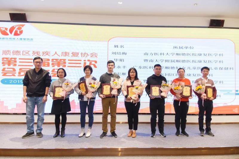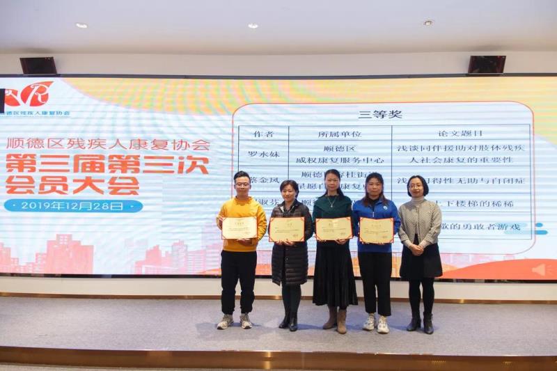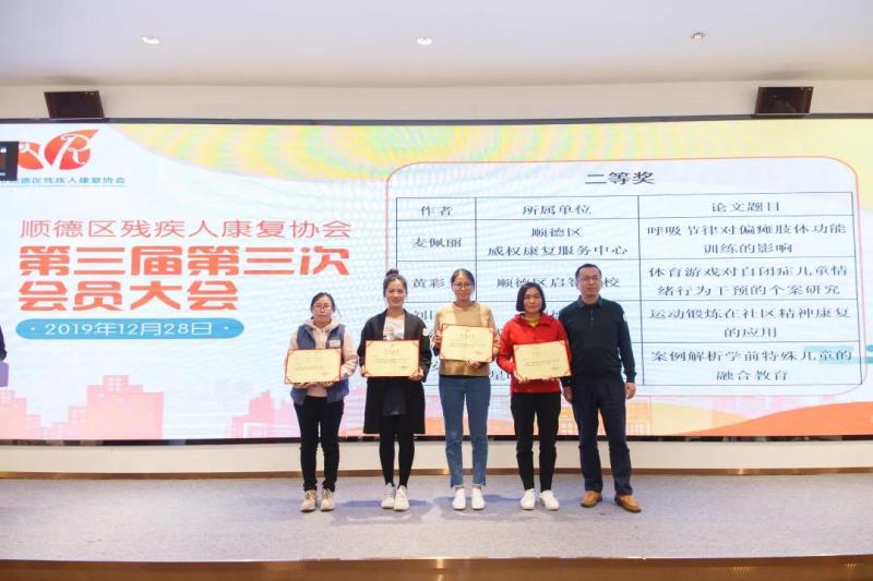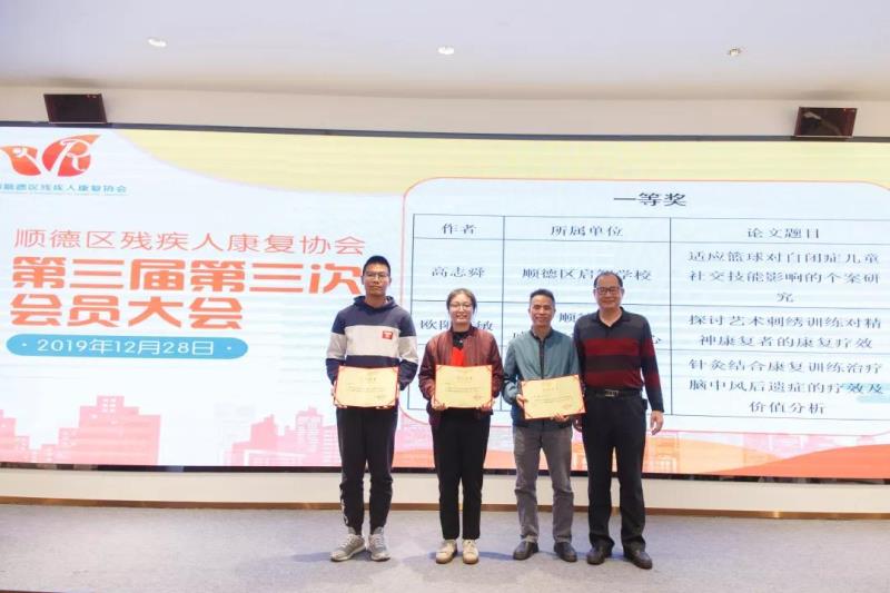 顺德康协副会长陆建林先生、朱锦渊先生以及刘结梅女士分别对2019年顺德区优秀康复论文一等奖、二等奖、三等奖获得者进行颁奖鼓励。