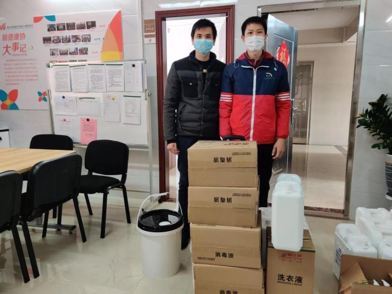 为抗击新型冠状病毒肺炎疫情,有效预防疫情进一步发生,顺德区残疾人康复协会同步采购了19桶20L的84消毒液以及180瓶活性酵素洗手液,为区内19间残疾人康复服务机构开展复工办公疫情防控工作提供物资应急支持。