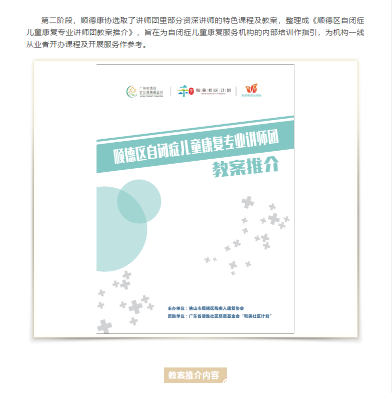 《顺德区自闭症儿童康复专业讲师团教案推介》发布啦!
