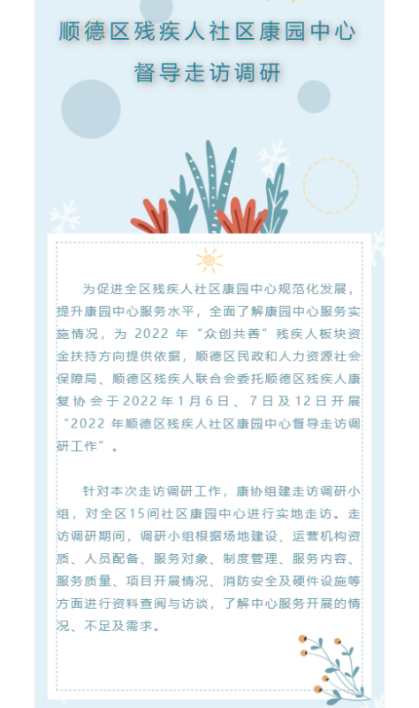 康园督导动态丨2022年顺德区残疾人社区康园中心督导走访调研