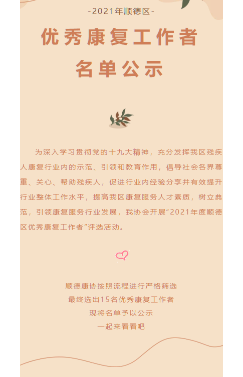 名单公示丨2021年顺德区优秀康复工作者名单出炉啦~