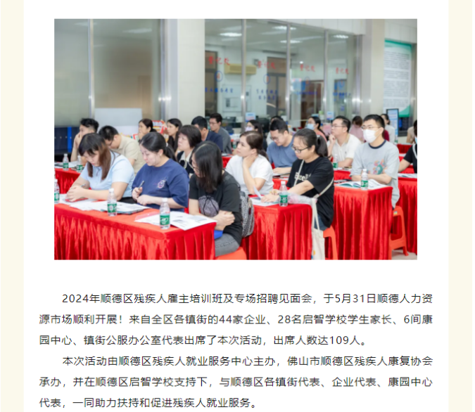 活动回顾丨2024年顺德区残疾人雇主培训班&专场招聘见面会圆满举办!