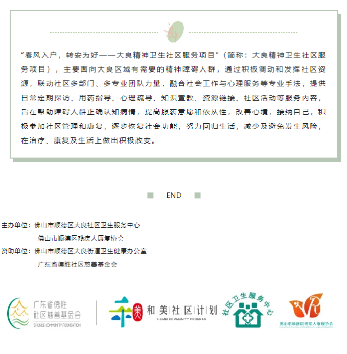 2019年顺德区残疾人社区康园中心第一期督导走访工作
