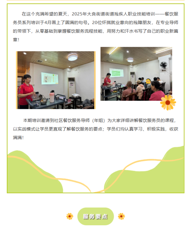 活动回顾丨第二期丨2025年大良街道残疾人职业技能培训——餐饮服务员系列培训圆满收官!