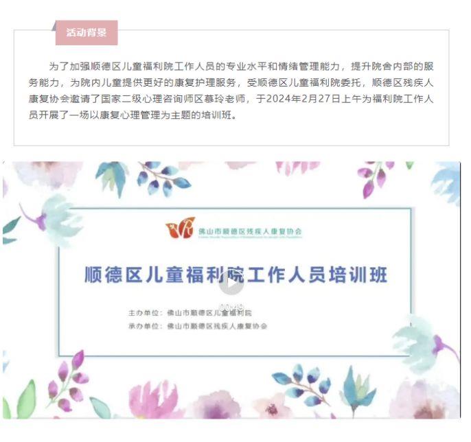 顺德区儿童福利院工作人员培训班顺利开展